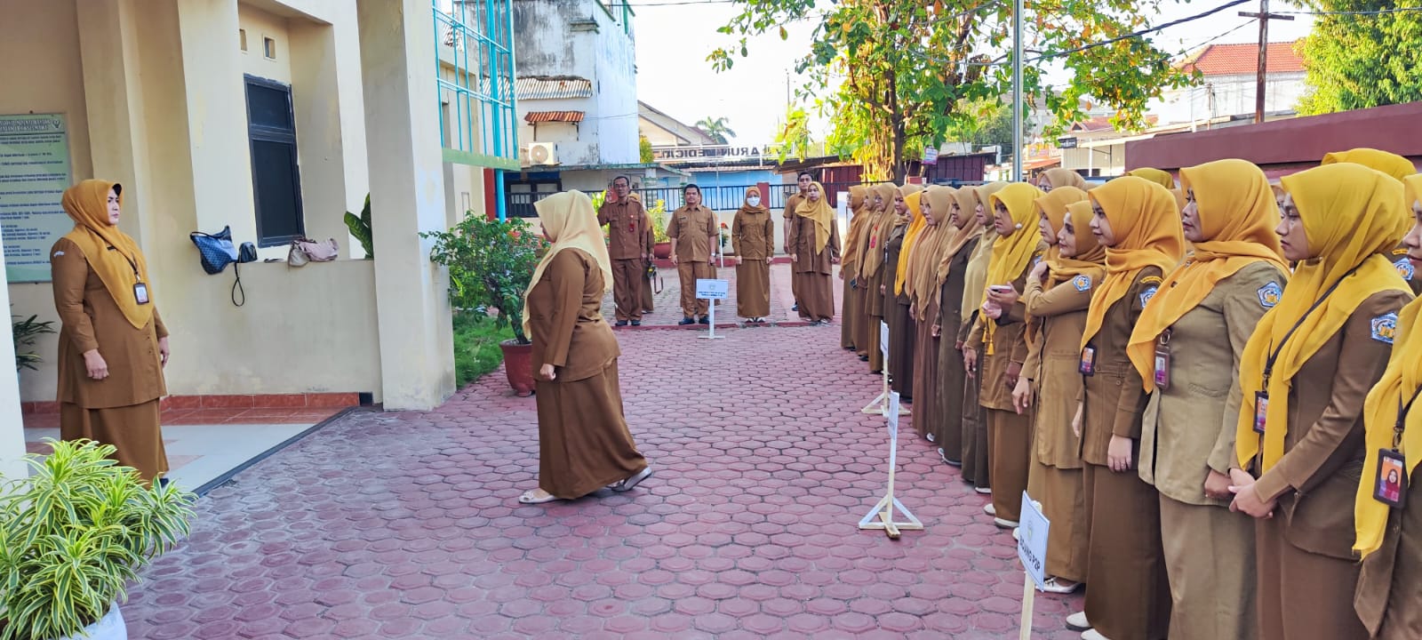 Apel pada Senin pagi di Lingkungan Dinas Kesehatan Kota Lhokseumawe. Pembina apel adalah Plt. Kepala Dinas, dipimpin oleh Sub koordinator SDMK, dan diikuti oleh seluruh ASN dan Non ASN Dinas Kesehatan Kota Lhokseumawe.