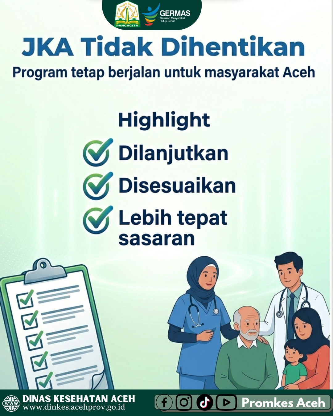 Plt. Kepala Dinas Kesehatan Kota Lhokseumawe menjadi narasumber pada wawancara yang diselenggarakan oleh RRI Pro 1 Lhokseumawe pada hari ini. Wawancara dilaksanakan via zoom bersama 2 narasumber lain dari BPJS dan DPR. Tema pembahasan pada wawancara ini adalah terkait implementasi Pergub No.2 Tahun 2026 tentang Jaminan Kesehatan Aceh (JKA). Pada kesempatan ini, Plt. Kadinkes menyampaikan bahwa JKA tetap berjalan, hanya saja dilakukan beberapa penyesuaian. Penyesuaian ini ditujukan agar program JKA bisa tepat sasaran dan berkelanjutan.